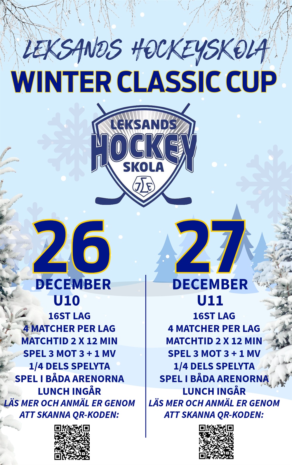 Leksands Hockeyskola bjuder i mellandagarna in till Leksands Hockeyskola Winter Classic Cup för åldersgrupperna U10 och U11.