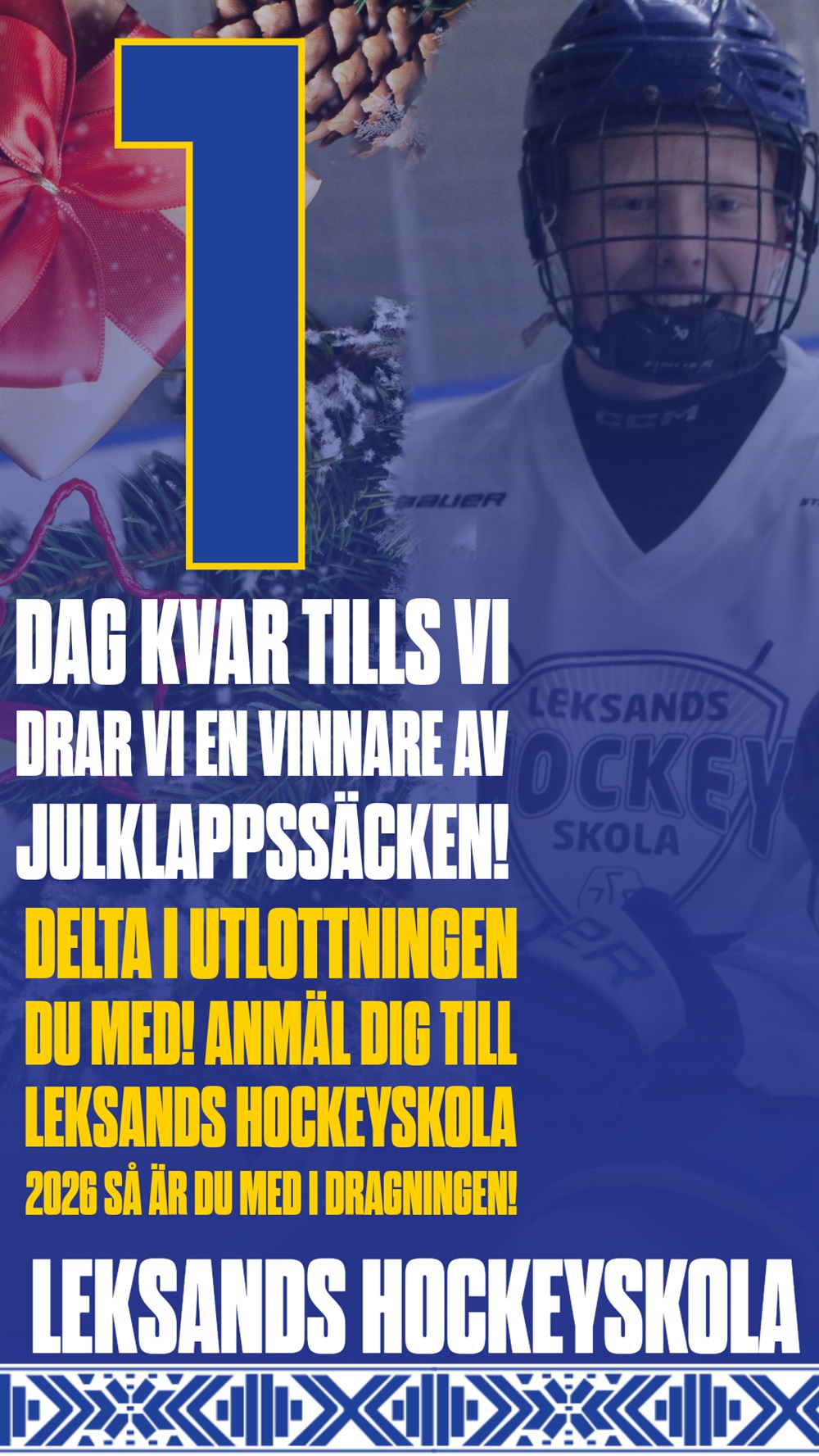 Alla som är anmälda till Leksands Hockeyskola 2026 senast julafton är med i utlottningen!